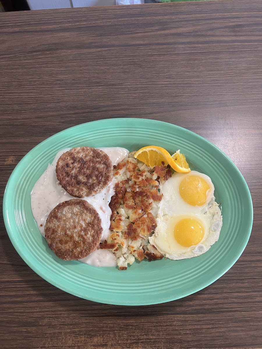 Nice neighborhood breakfast/lunch cafe. We both ended up getting the same thing eggs, sausage patties, on biscuits and gravy whith homefries. All was really good. Its a small place and have several Mexican dishes. The owners I believe are of Mexican descent.